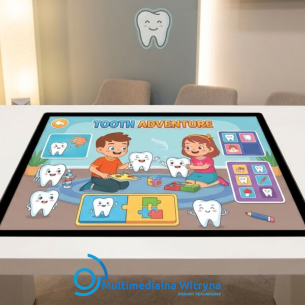 Coraz częściej stoły interaktywne pojawiają się także w poczekalniach dla dzieci – np. w gabinetach stomatologicznych, przychodniach czy klinikach. Pozwalają zająć uwagę najmłodszych, redukują stres przed wizytą i poprawiają komfort oczekiwania.